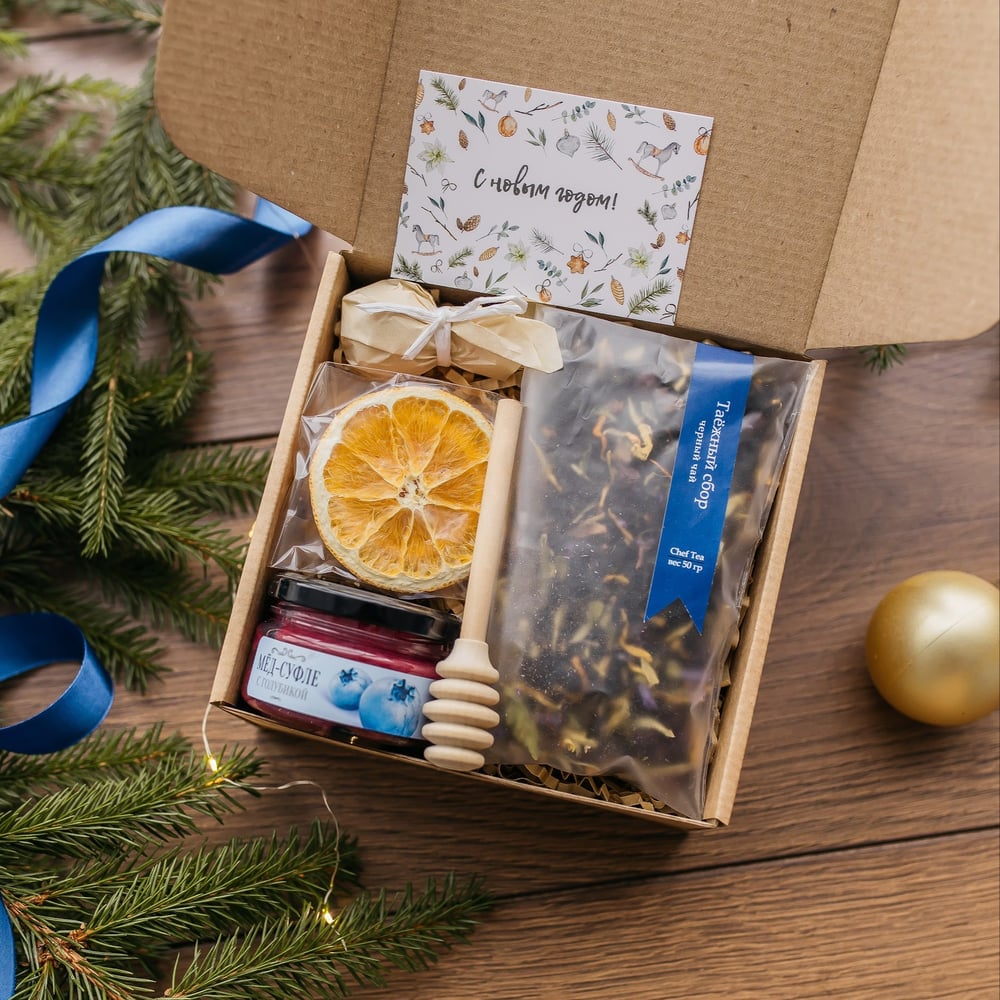 Подарок на Новый год с чаем и медом