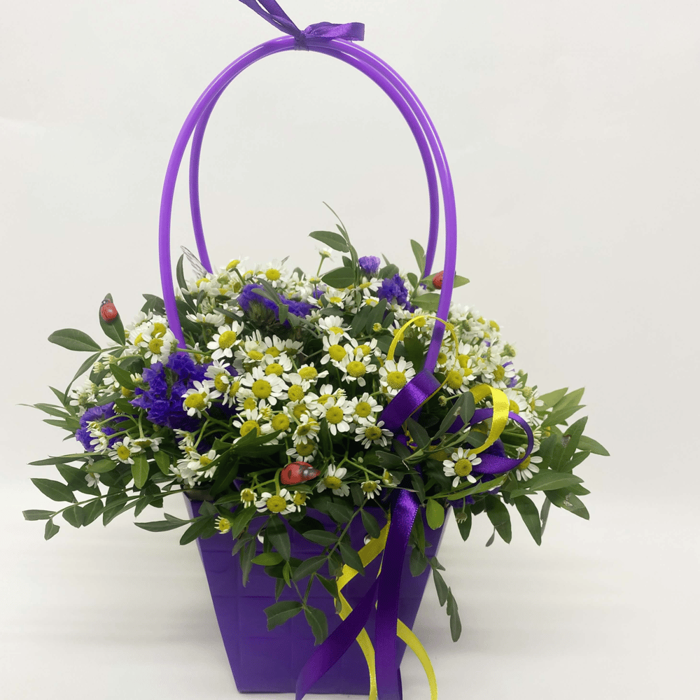 Коробка с цветами «Полевые цветы в сумочке»
