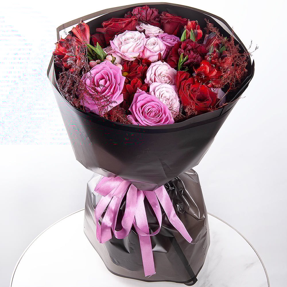 Букет «Полночная серенада» из роз и альстромерий