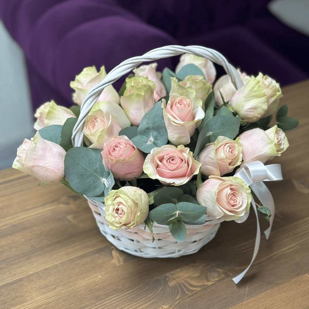 Корзина с цветами «Поцелуй леса» из роз