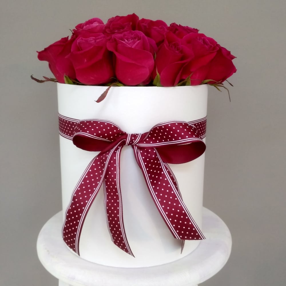 Шляпная коробка с цветами «Поцелуй любви» из роз