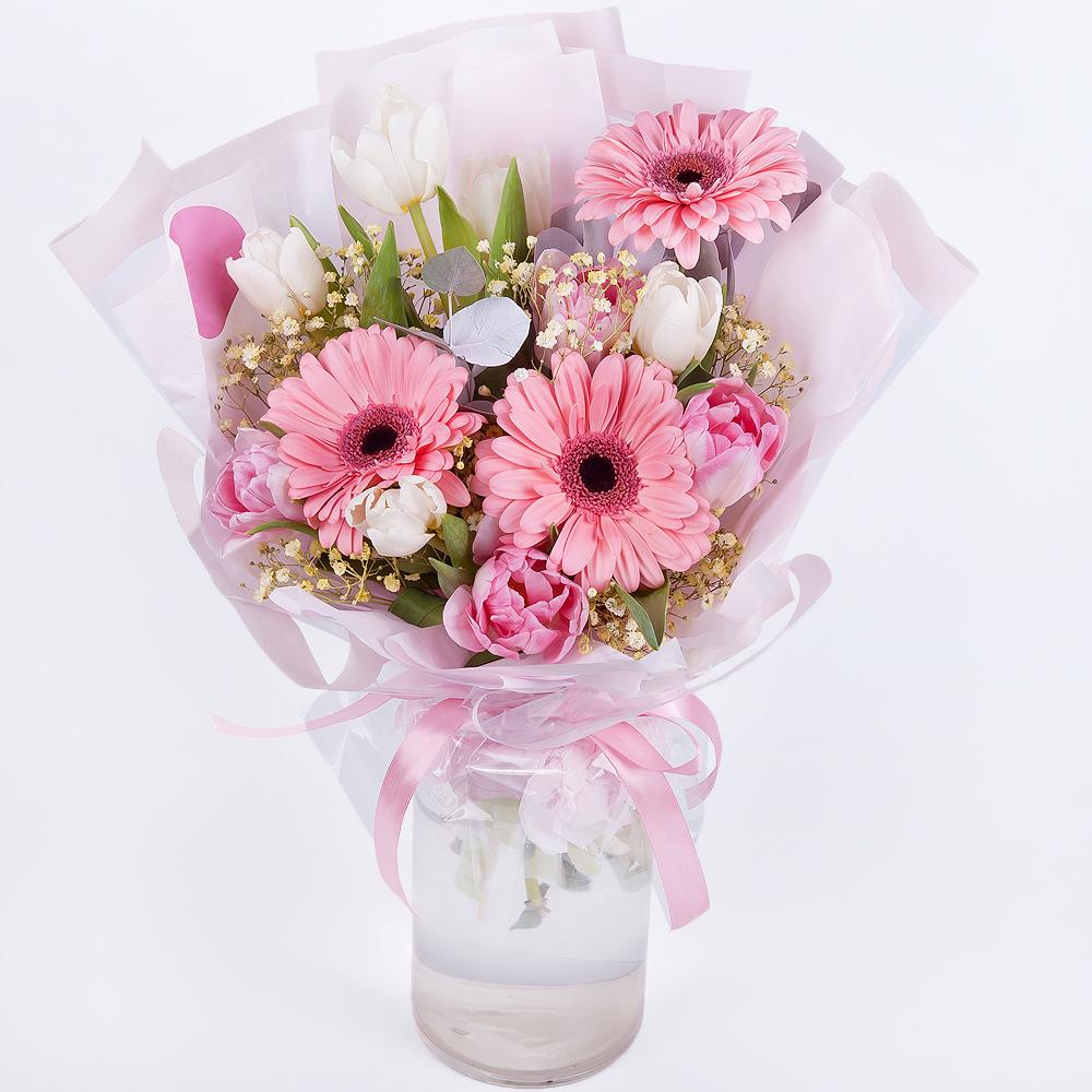 Букет «Поцелуй весны» из тюльпанов и гербер