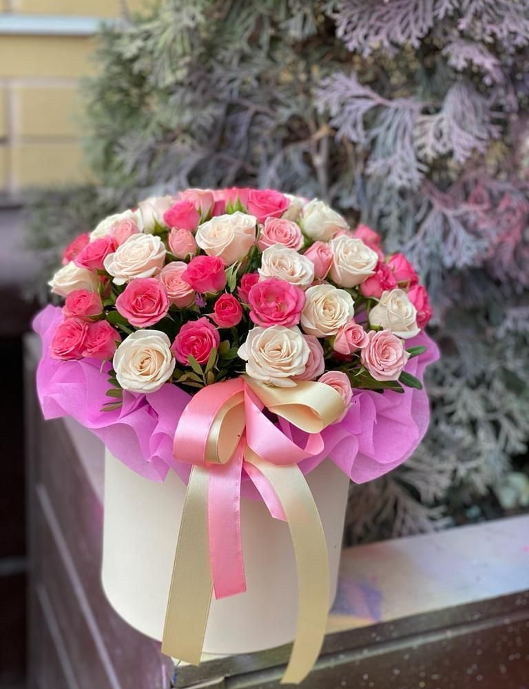 Нежные кустовые розочки, в коробке для самых близких и важных.