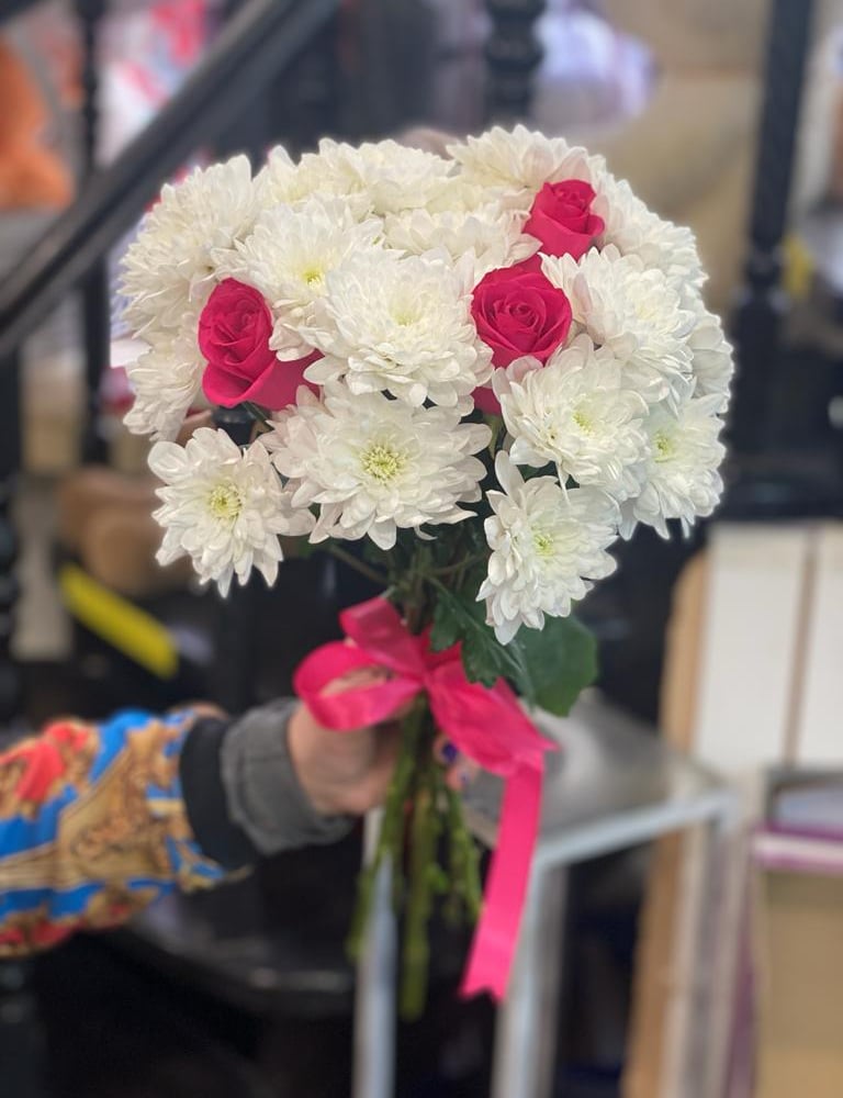 Букет «Пркрасная Белоснежка» из хризантем и роз