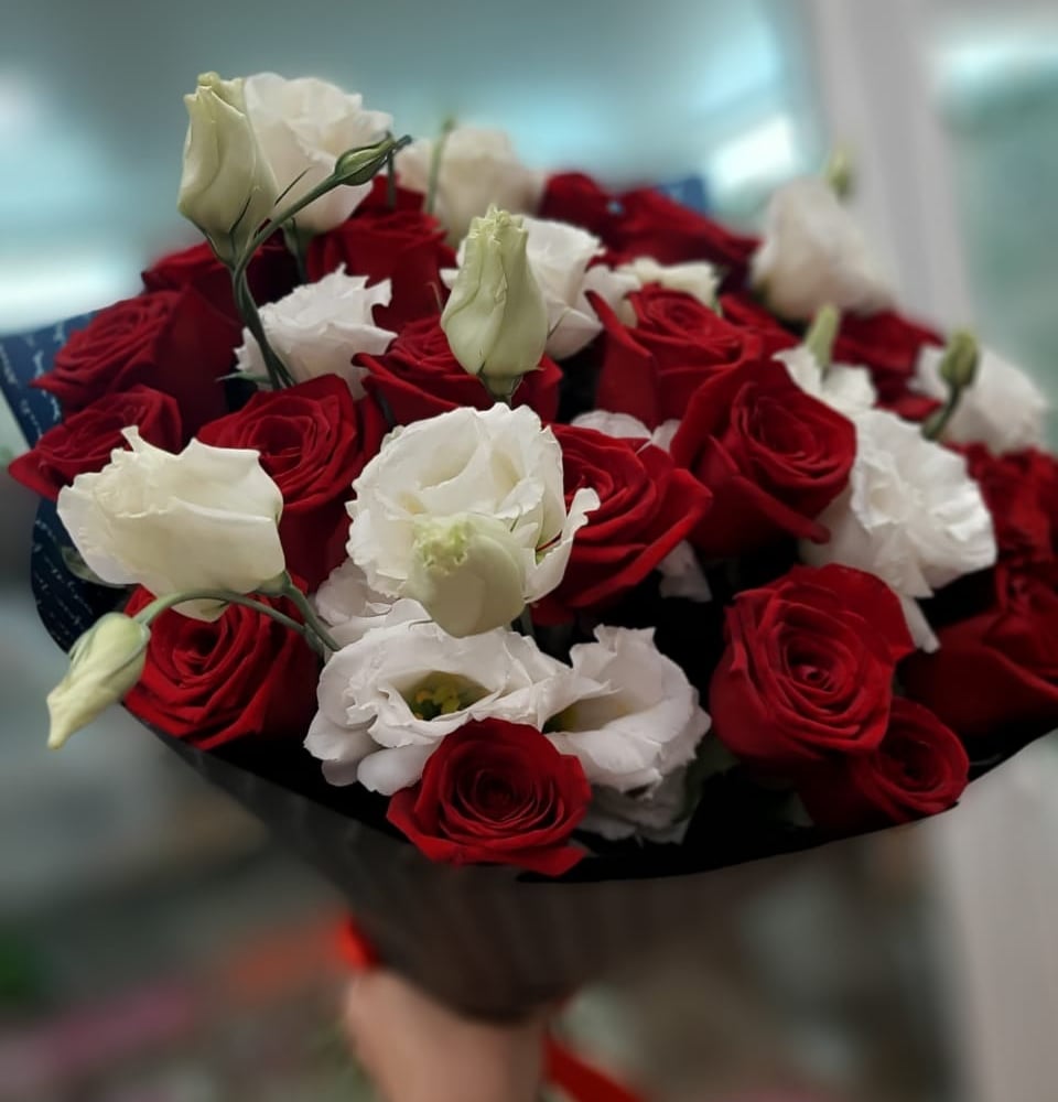 Букет «Пылкий» из роз и эустом