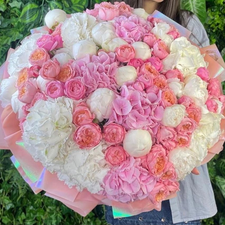 Букет «Пышный приём» из роз и пионов