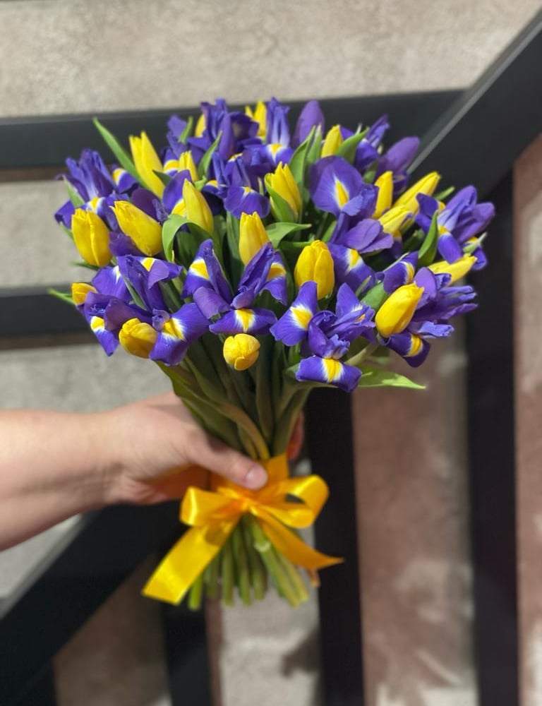 Букет «Радостное настроение» из тюльпанов и ирисов