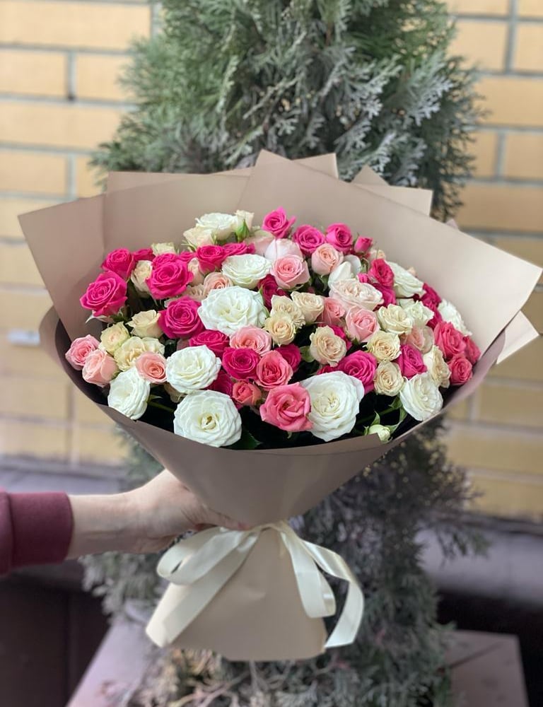 Прекрасный нежный букет из кустовых роз