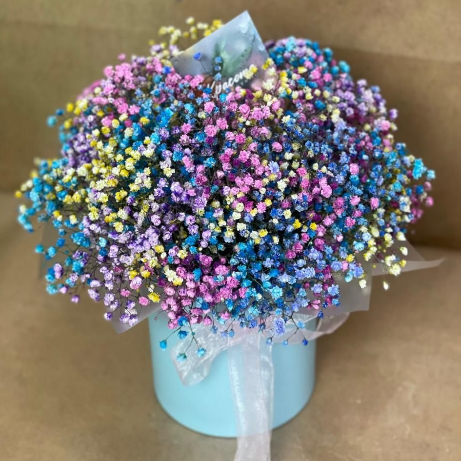 Коробка с цветами «Радуга» из гипсофил