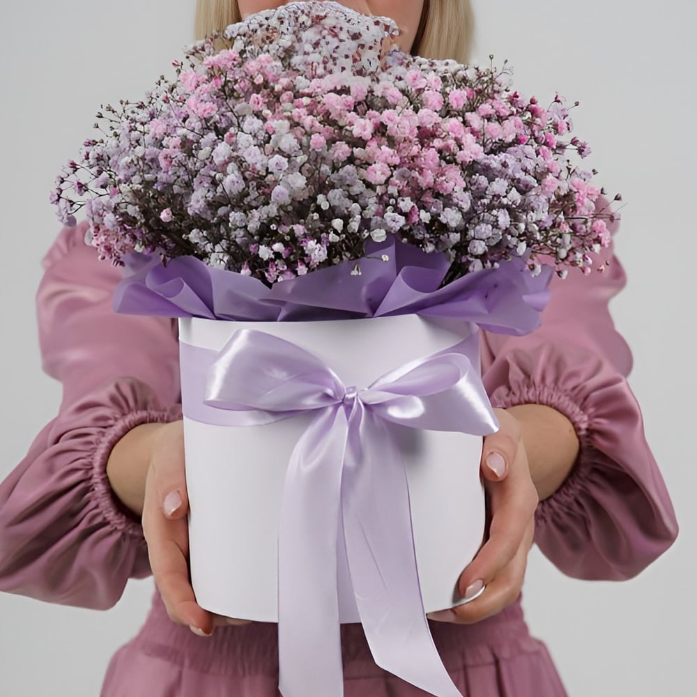 Нежное облако из гипсофилы в коробке.