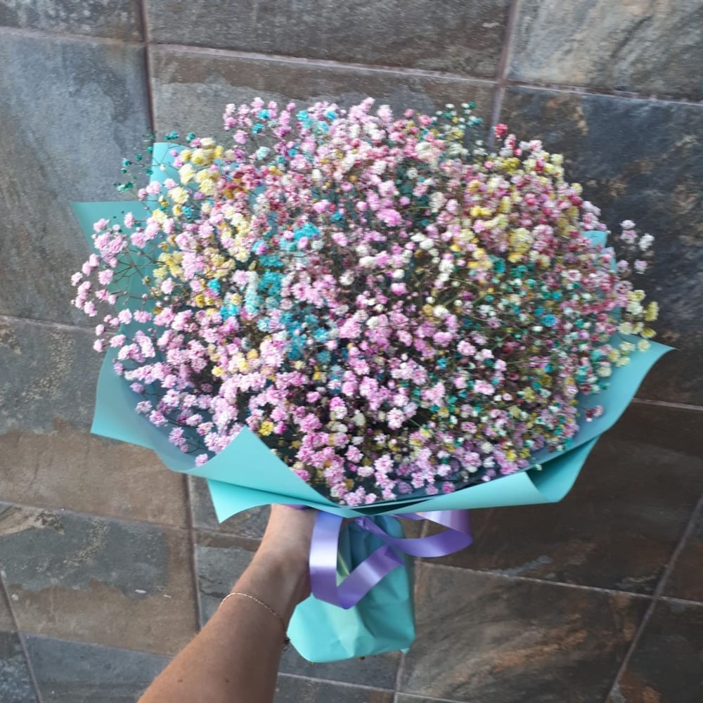 Букет из радужной гипсофилы подарит хорошее настроение и порадует любого получателя!