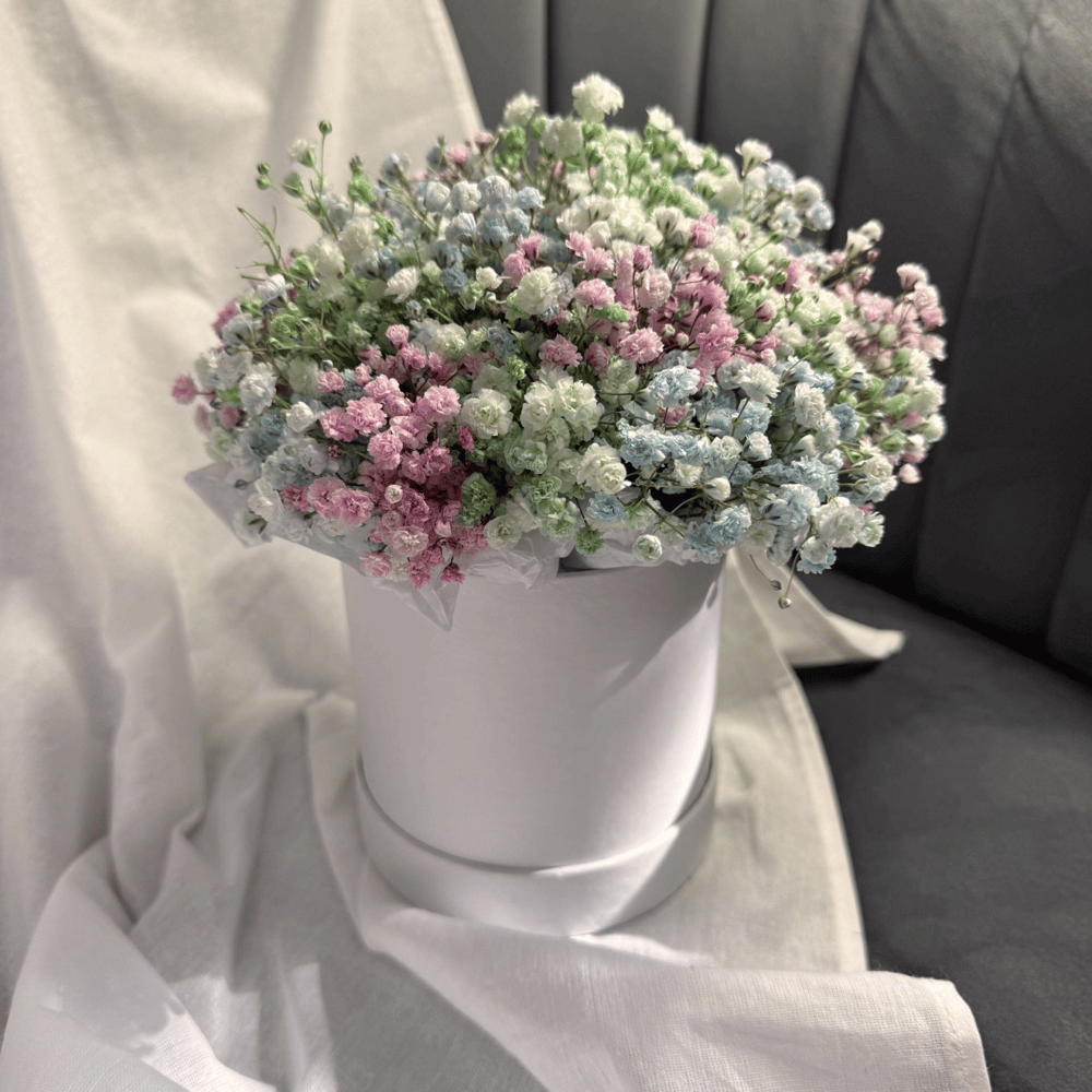 Коробка с цветами «Радужное облако» из гипсофил