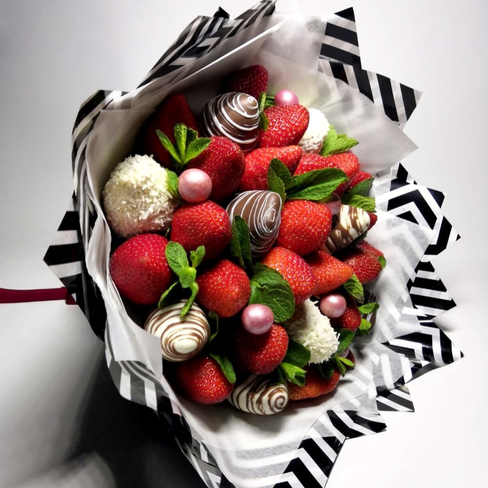 Рандеву Простая и нежная композиция с классическим сочетанием клубники и шоколада. Настраивает нас на нежные, романтические настроения(ох уж эта тавтология) =) Букет идеально подойдет: К свиданию Романтический жест без повода) Ко дню рождения Упаковка может быть разной, подберем индивидуально для вас. Состав букета: клубника, шоколад, мята