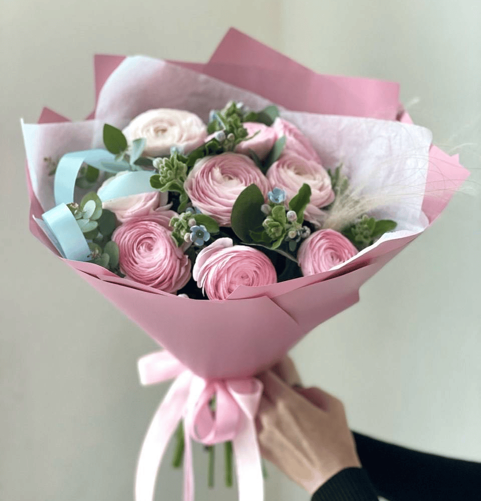 Нежнейший букет с трепетными розовыми лютиками, модными голубыми незабудками и свежим эвкалиптом. Идеальный выбор для ярких эмоций, романтических моментов или поздравлений. Изысканность и свежесть в…