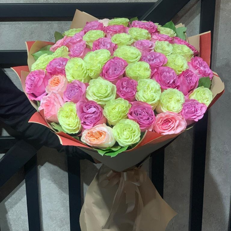 Великолепный букет из пышных разноцветных роз нежных оттенков - как хорош !