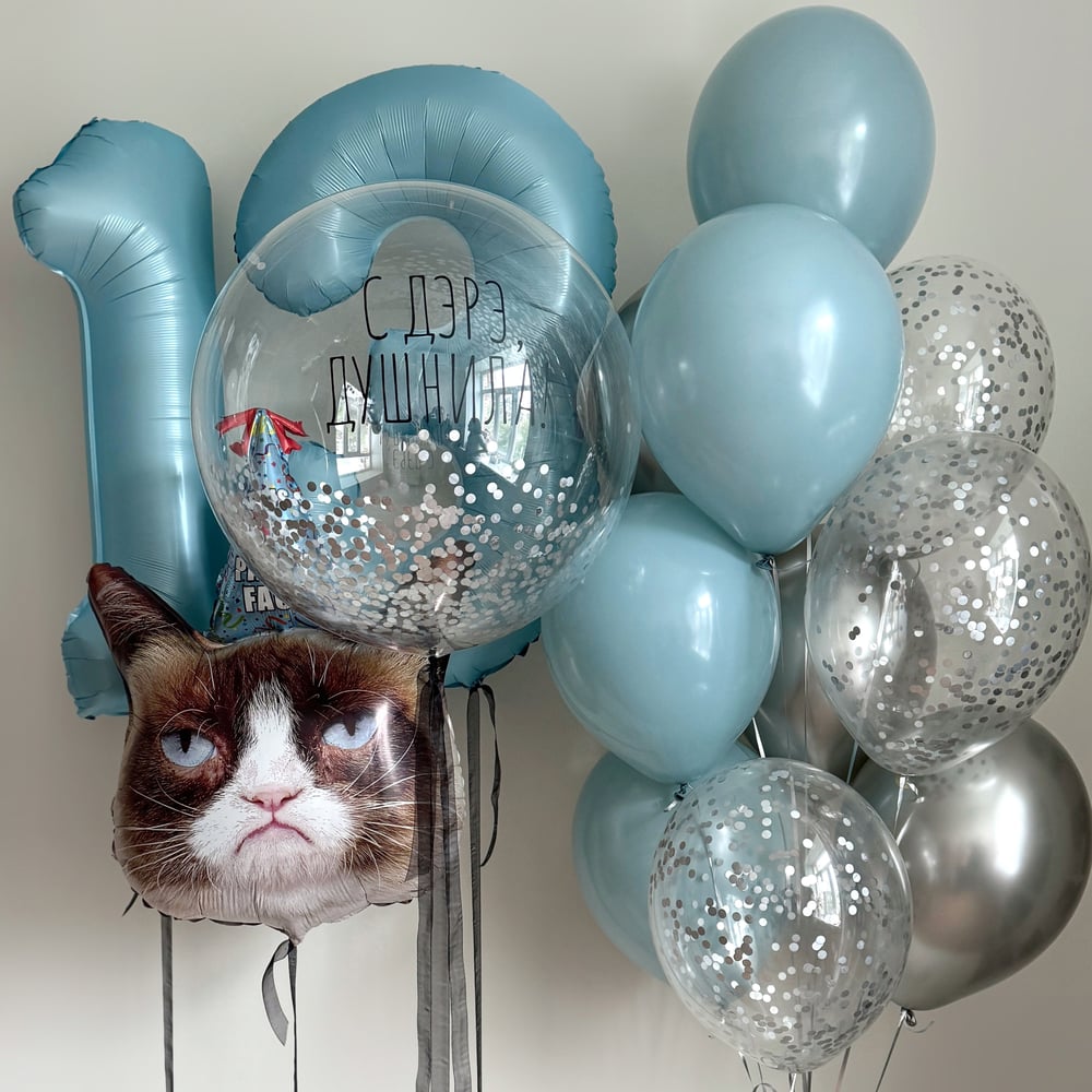 Создайте незабываемую атмосферу на вашем празднике с набором Ретро Сияние! Этот великолепный комплект включает в себя фонтан из 10 воздушных шаров в стильных ретро голубых и серебряных тонах, дополненных кристаллическими шарами с конфетти, которые добавят яркости и веселья вашему мероприятию. В набор также входит один большой шар баблс с конфетти и персонализированной надписью, который станет настоящим акцентом вашего декора. Не забудьте про две цифры, которые помогут подчеркнуть важные моменты вашего праздника! И, конечно же, не обошлось без забавного шарика Сердитая кошка, который добавит веселья и улыбок всем гостям. Пусть ваш праздник будет полон радости и ярких эмоций с набором Ретро Сияние! Идеально подходит для дней рождения, юбилеев и других торжеств! Набор состоит из: Фонтан на 10 шаров - ретро голубой, серебро и кристалл с конфетти Большой шар баблс с конфетти и надписью - 1 шт Цифры 2 шт Шар Сердитая кошка - 1 шт