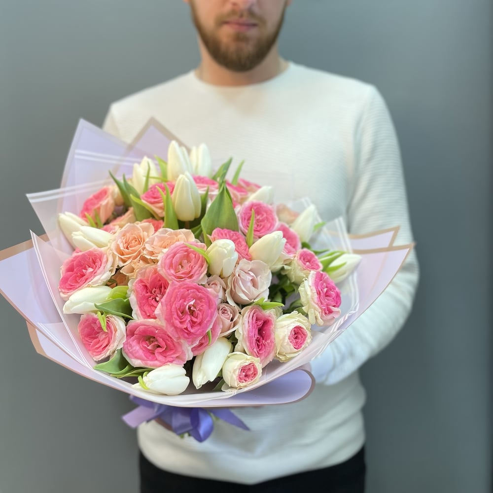 Букет «Реверанс» из тюльпанов и роз