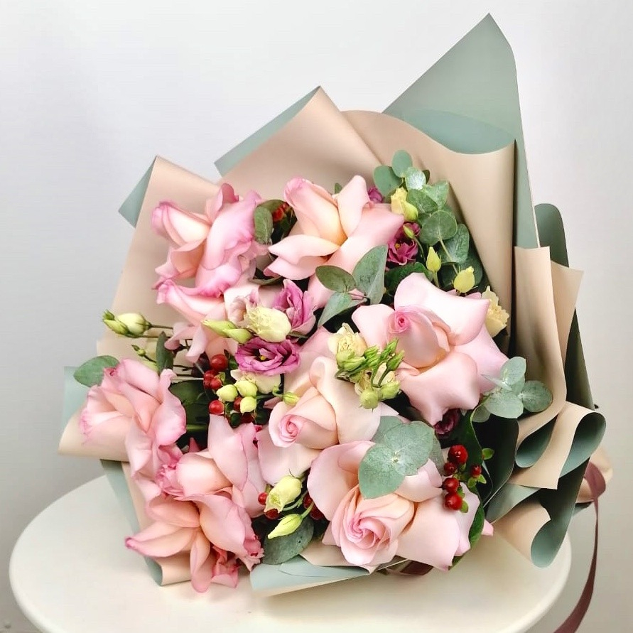 Букет «Римские каникулы» — это гармоничное сочетание лизиантусов, розовых эквадорских роз, грин белл и гиперикума. Этот букет станет прекрасным подарком для любого случая. Лизиантусы придают букету нежность и воздушность, розовые эквадорские розы — изысканность и роскошь, грин белл — свежесть и лёгкость, а гиперикум — яркость и насыщенность. Букет «Римские каникулы» можно подарить на день рождения, юбилей, свадьбу или любое другое торжество. Он также подойдёт для выражения любви, благодарности или просто как знак внимания. Мы гарантируем высокое качество наших букетов и своевременную доставку. Позвольте себе и своим близким насладиться красотой и гармонией букета «Римские каникулы»!