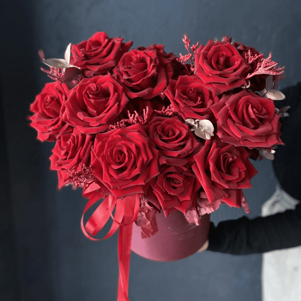 Шляпная коробка с цветами «Роковая встреча» из роз