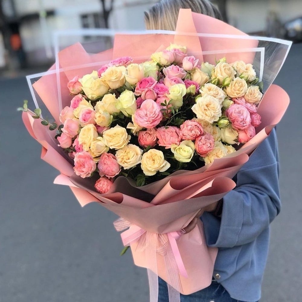 🤩Желаете удивить близкого человека? Хочется чтобы глаза сияли от счастья? Объёмный букет из кустовых роз-это именно то, что нужно! Ваш близкий человек будет в восторге! 🎁Такой подарок подойдёт как подарок на День Рождения, на свидание, в качестве извинения или просто так без повода, чтобы поднять настроение близкому человеку. 🏵Объёмный подарок из ароматных, свежих цветов произведёт яркое впечатление и сделает подарок незабываемым. 🎁Порадуйте подарком из ароматных, свежих цветов прямо сейчас! Почему именно мы? -Гарантируем высокое качество продукции. -Бесплатная круглосуточная доставка. -Вежливые харизматичные курьеры, которые обучены общению с получателем подарка