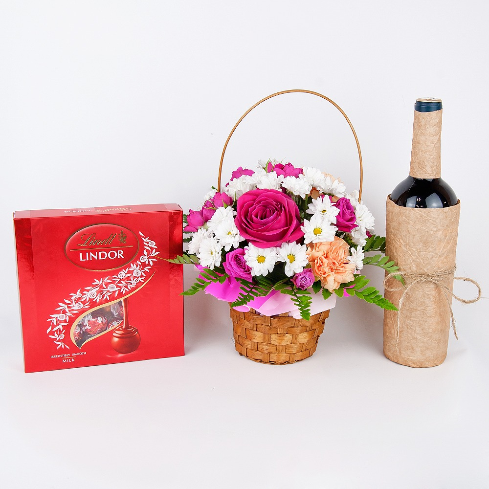 Подарочный набор «Романтический ужин» из роз и хризантем