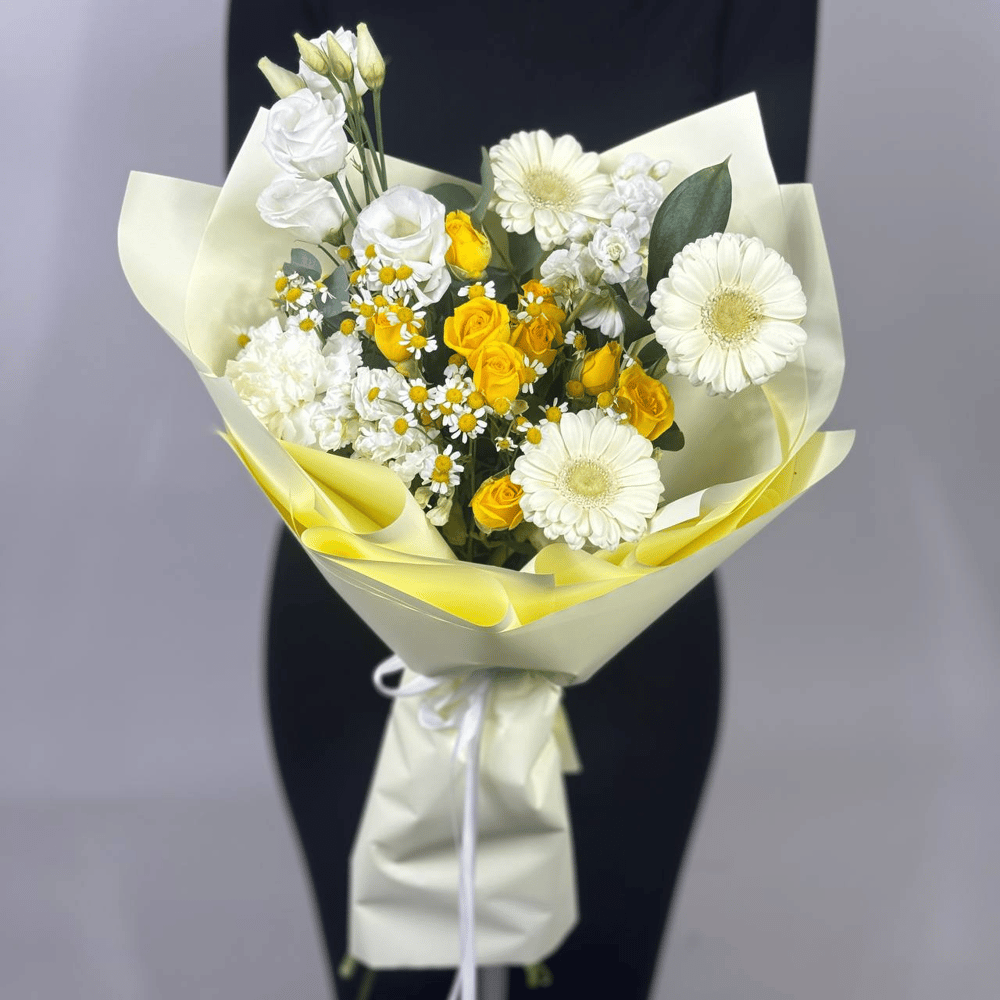 Букет «Ромашечная» из гербер и роз