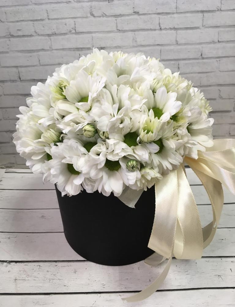 Шляпная коробка с цветами «Ромашка» из хризантем
