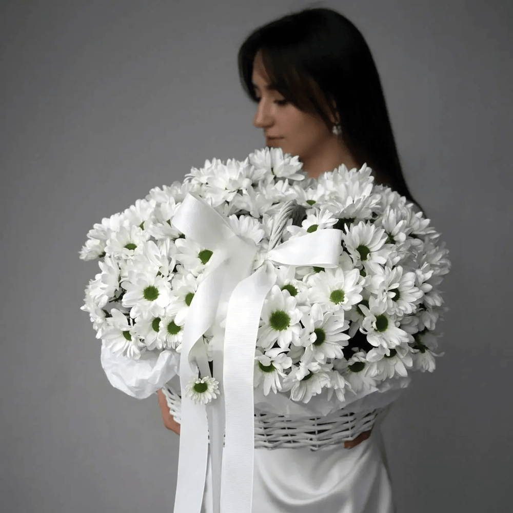 Корзина с цветами «Ромашка» из хризантем