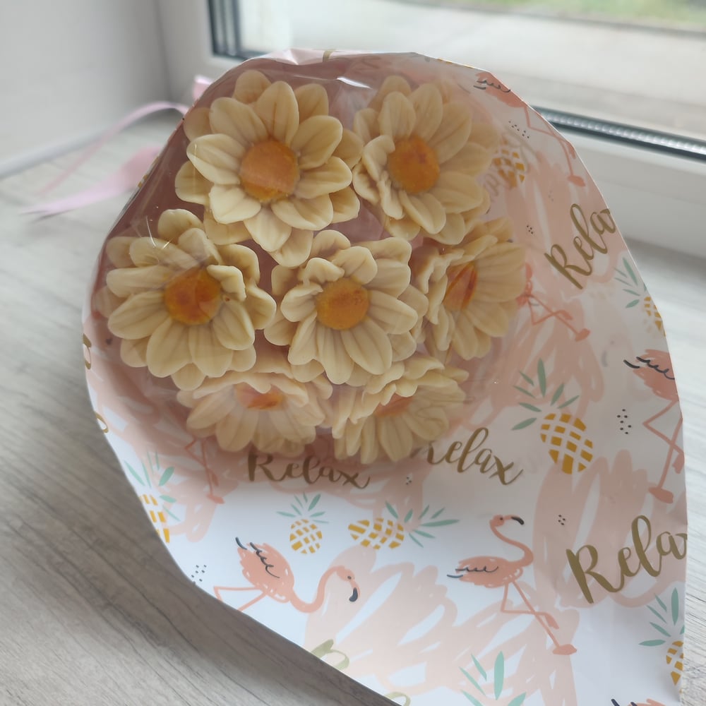 Букет ромашек из белого итальянского шоколада.