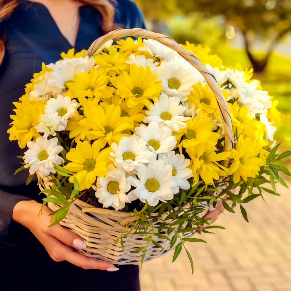 Корзина с цветами «Ромашки стандартный» из хризантем