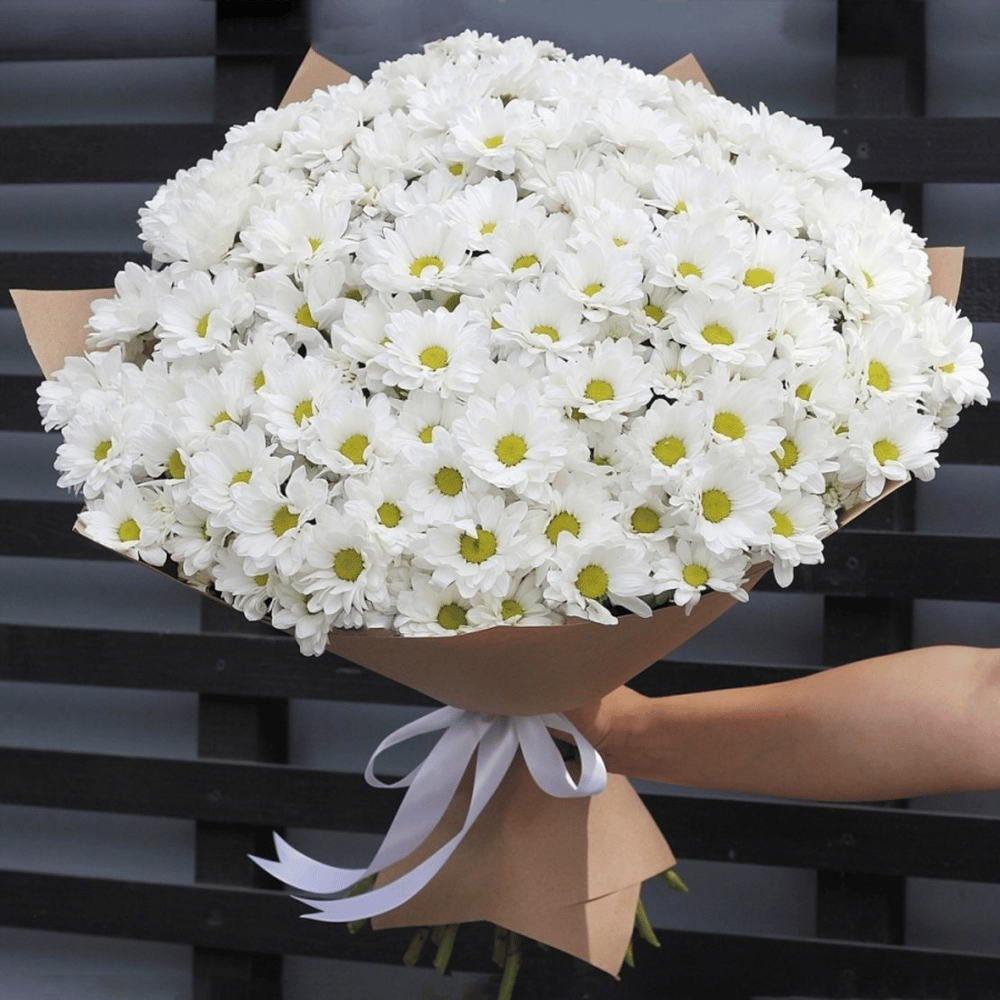 букет из 19 кустовых хризантем в стильном крафтовом оформлении.