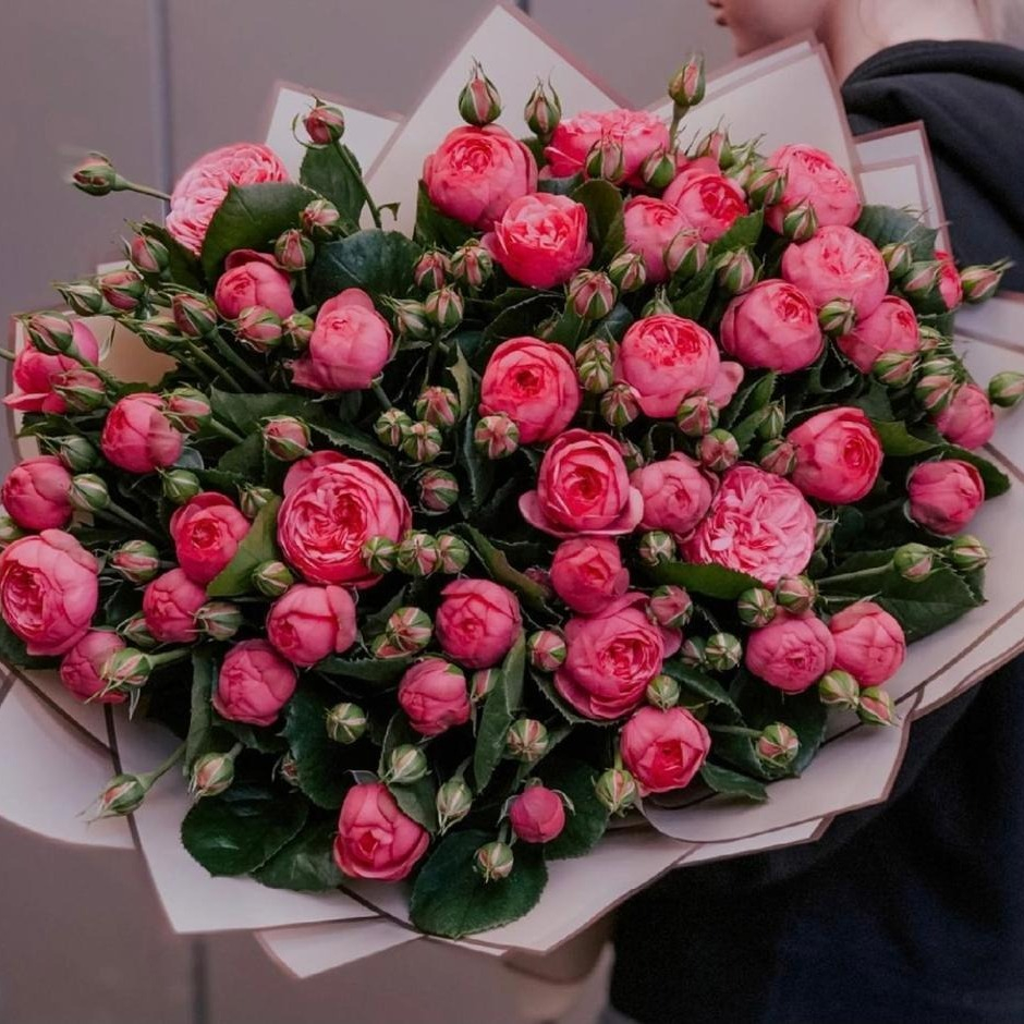 Пионовидные розы – цветы с пышными бутонами и великолепным ароматом. Композиция из этих цветов выглядит поистине роскошно.