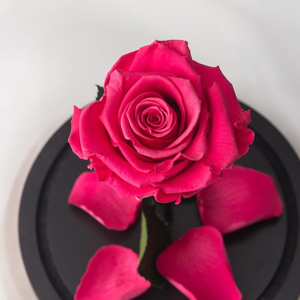 Роза в колбе - это настоящий оригинальный подарок нашего времени. Роза в колбе создана по мотивам культового мультфильма Красавица и Чудовище. Цветы под колбой сохраняют жизнеспособность до 5 лет, не нуждаются в уходе. Розы для таких подарков выбираются тщательно и выращиваются в Эквадоре по особым технологиям с использованием высококачественных органических удобрений. Созревание бутонов таких роз намного дольше, чем у обычных цветов для цветочных магазинов. Именно про наши цветы говорят, подарок на 5 лет. Натуральные, прекрасные розы с гарантией до 5 лет! Не требуют ухода и полива, не вянут! Уход: Берегите нашу розу от прямых солнечных лучей. Наши розы не любят яркое солнце и могут потерять свой цвет. Розу не нужно поливать, она прошла специальную обработку и вода ей не требуется. Это не вакуум, колба не запаяна. Колбу можно снимать, розу трогать. Если вы оставите розу без колбы, на бутоне наберется пыль, в этом случае пройдитесь аккуратно по бутону чистой и мягкой кисточкой. Если колба запылилась или запотела, её можно снять и протереть любым средством для стёкол. Примечание: На подставке лежат несколько лепестков роз, они не опали с розы, а сняты с другого бутона для придания композиции полного соответствия с розой из мультфильма "Красавица и Чудовище".