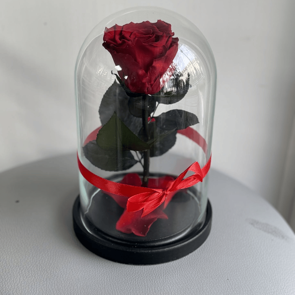 Эксклюзивная стабилизированная живая роза в колбе, которая сохраняет свою натуральную красоту 5 лет!Размер: высота 22 см, диаметр 13 см, диаметр бутона 6-7 см. Неувядающая роза создана из живых цветов высшего сорта. Ухаживать практически не нужно. Роза в колбе не требует полива, подрезки и других манипуляций. Достаточно расположить цветок так, чтобы на него не попадали прямые солнечные лучи. Колбу можно снимать, но не стоит делать этого слишком часто. Так как это сокращает срок жизни цветка.
