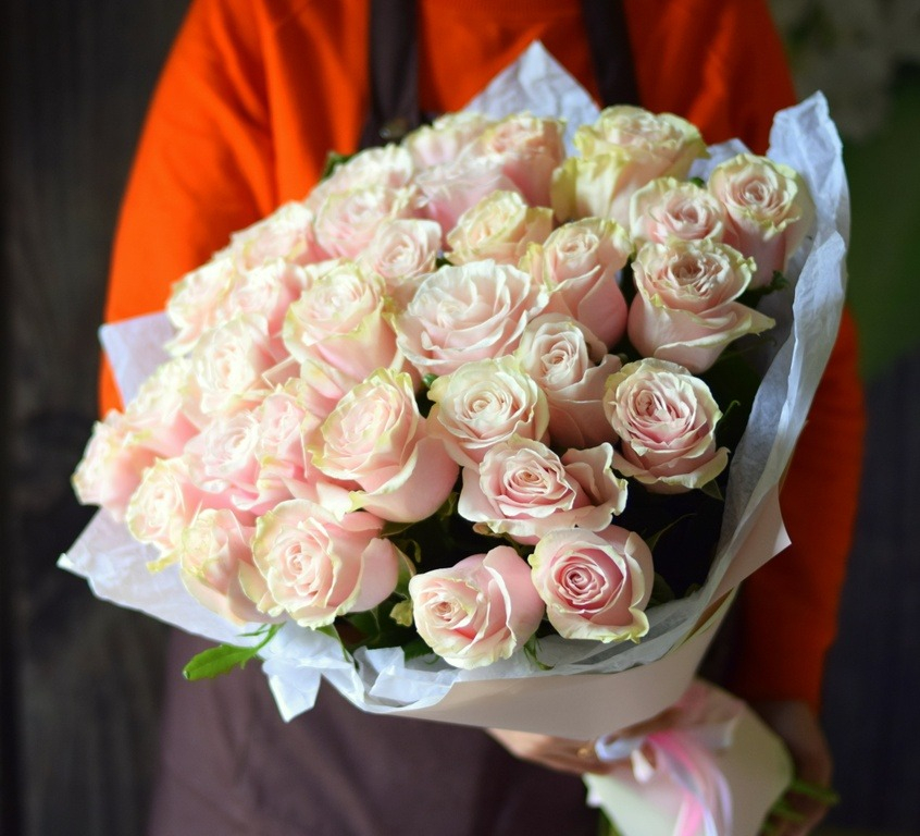 Идеальные создания природы. Фарфоровые розы сорта Пинк Мондиаль. Королевы розового мира! Букет из них не менее прекрасен, чем букет пионов. В букете 31 роза.