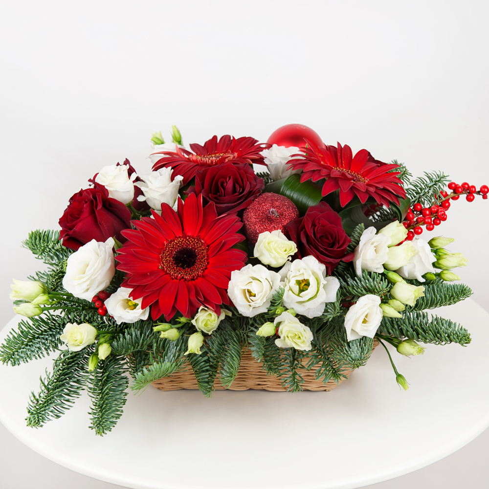 Композиция «Рождественские встречи» из роз и эустом
