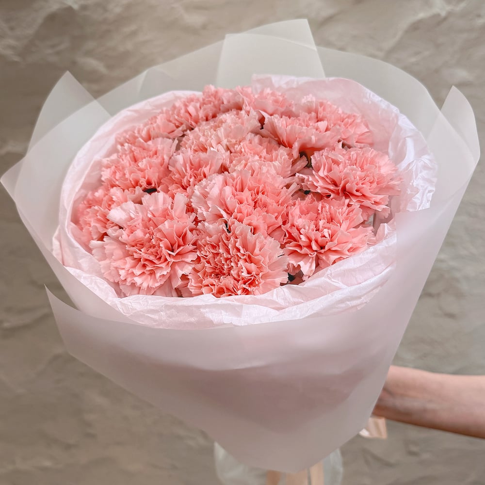 Букет из 15 розовых диантусов (гвоздик) — это изысканная композиция, которая сразу привлекает внимание своей нежностью и красотой. Крупные цветы в композиции создают интересный визуальный эффект, придавая букету особую утончённость. Упаковка дополняющая букет, добавляет свежести и завершённости. Такой букет станет прекрасным подарком для любого случая — от юбилея до романтического вечера. Он не только украсит интерьер своим элегантным видом, но и создаст атмосферу тепла и уюта, подчёркивая торжественность момента.