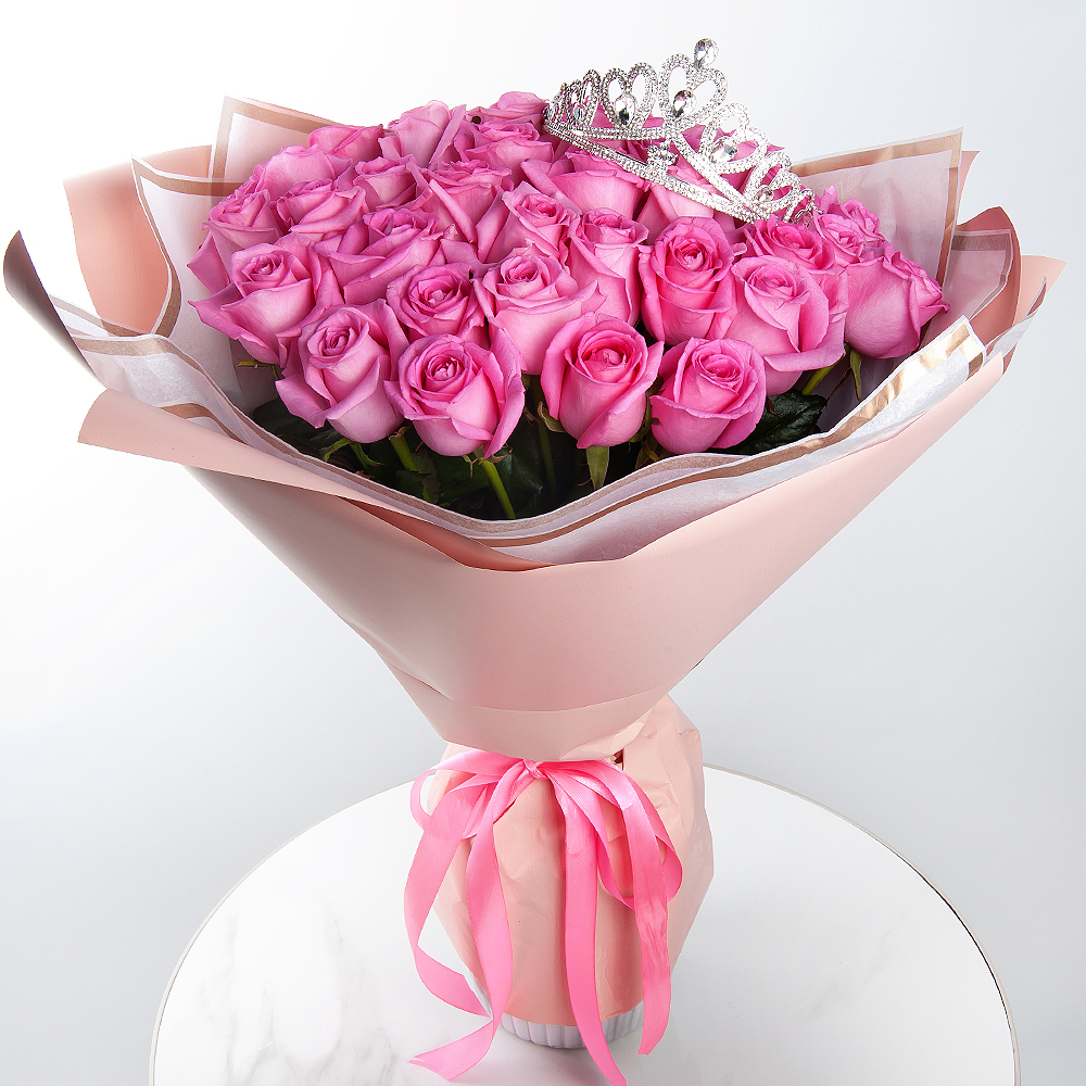 Букет «Розовое королевство» — это воплощение роскоши и элегантности. Он создан для тех, кто ценит красоту и изысканность. Букет состоит из 51 розовой розы, которые символизируют любовь, нежность и восхищение. Декоративная корона, выполненная из высококачественных материалов, добавляет букету изысканности и шарма. Букет «Розовое королевство» станет прекрасным подарком для любого случая. Он подойдёт для поздравления с днём рождения, юбилеем, свадьбой или любым другим торжеством. Закажите букет «Розовое королевство» и подарите себе или близким незабываемые эмоции!