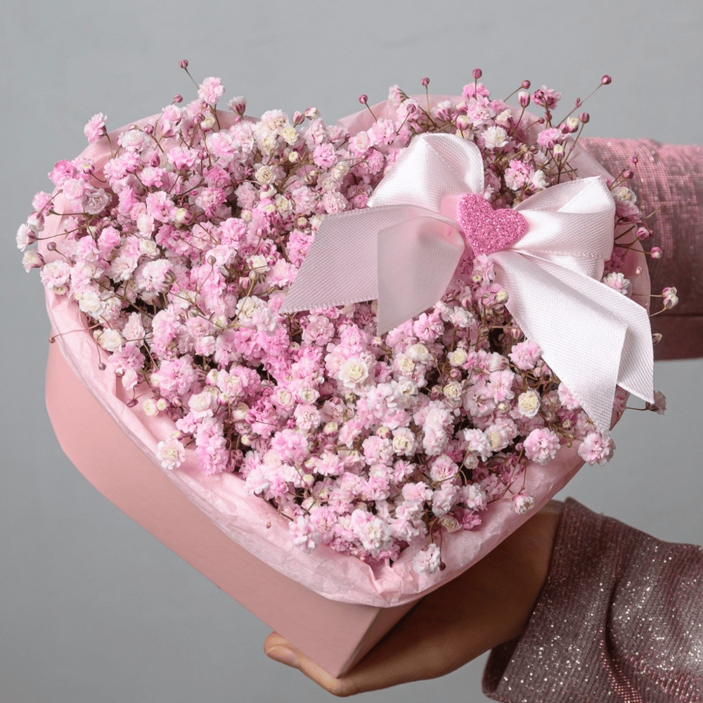 Композиция в форме сердца «Розовое облако гипсофила S»