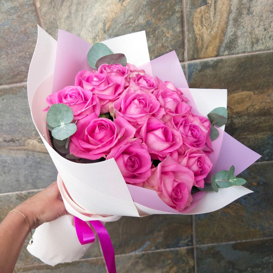 Яркий букет из 15 кенийских роз подарит хорошее настроение и вызовет улыбку.