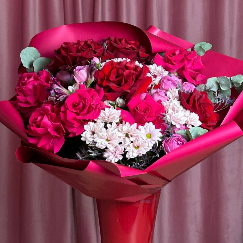 Погрузитесь в нежность и романтику с этим изысканным букетом, выполненным в ярких розовых оттенках. Каждый цветок — словно капля любви, аккуратно собранная в гармоничное сочетание. Этот букет — идеальный способ выразить глубокие чувства, подарить тепло и романтическое настроение. Пусть его яркие оттенки наполнят сердце особенной трепетной любовью и заботой.