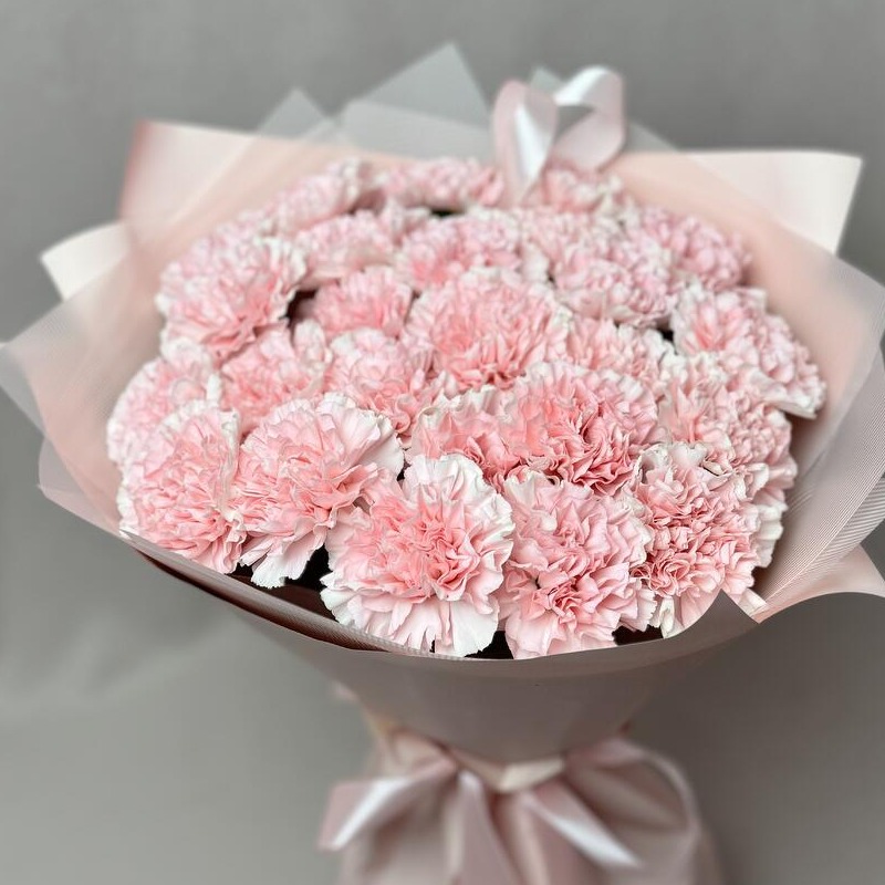 Милый, красивый букет из розовых диантусов, очень стойкий и ароматный.