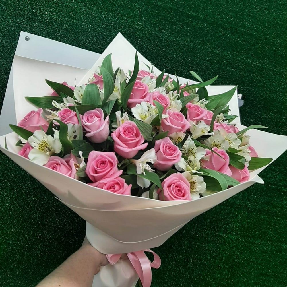 Каждая девушка любит помечтать. Подарите своей даме розовые мечты с альстромериями белые и розовые розами. это букет волшебной красоты с завораживающим тонким ароматом.
