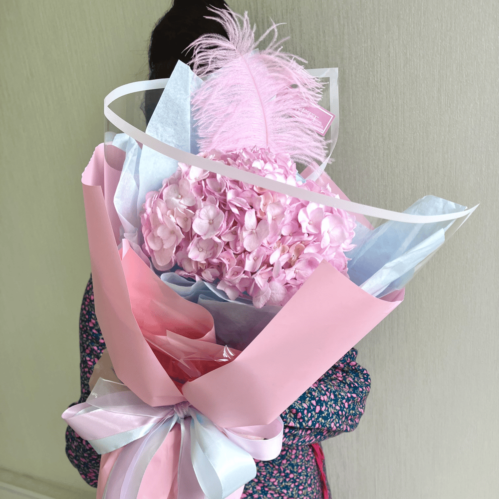 Состав Гортензия (Королевская) - 1 шт. Стифа пучок - 1 шт. Дизайнерская упаковка - 1 шт. Лента атласная - 2 шт.