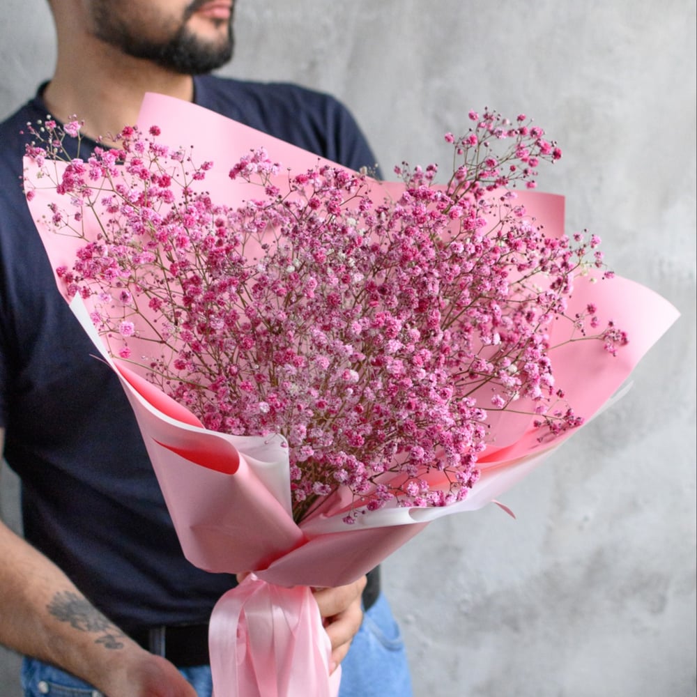 Розовый букет летний ветерок из гипсофил