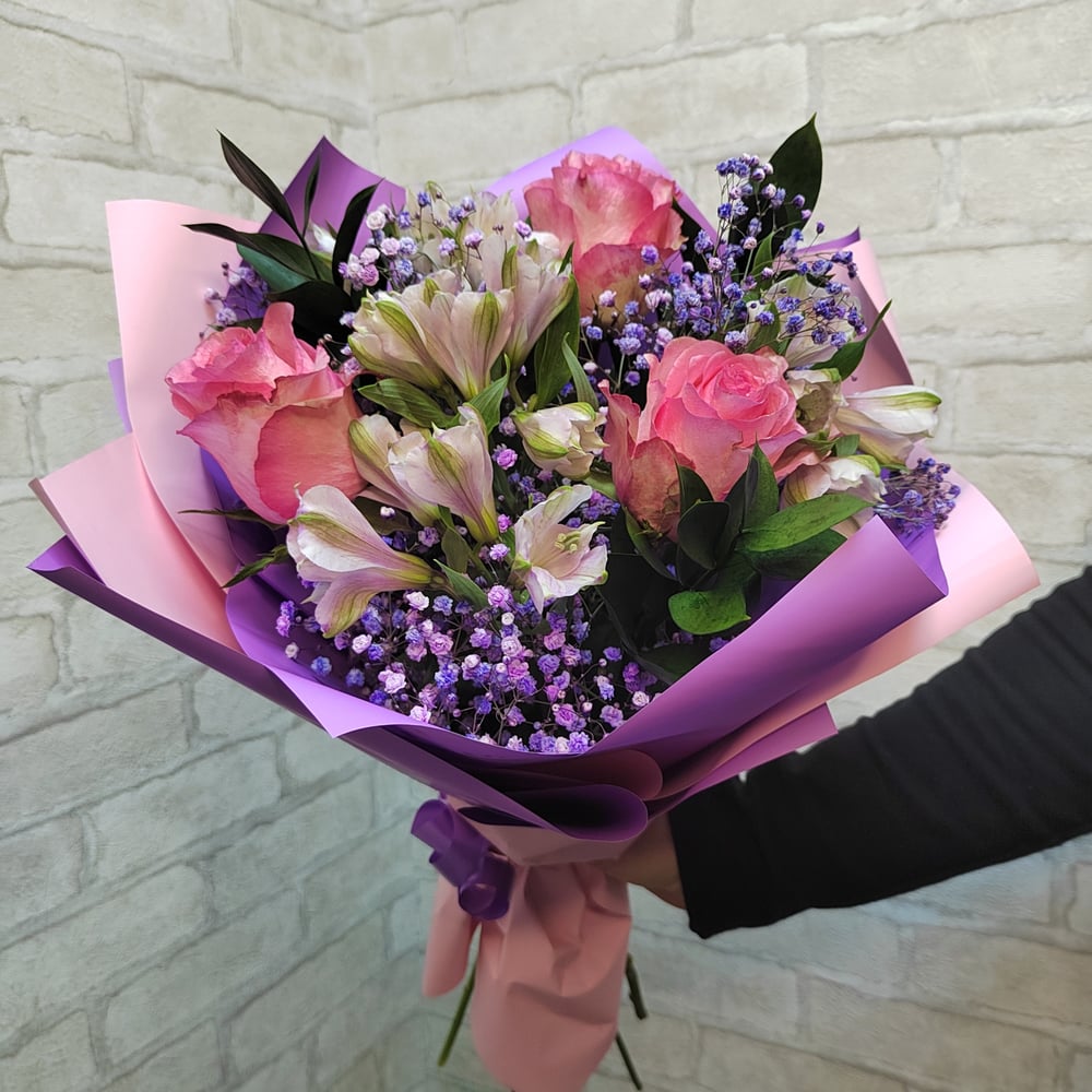 Букет «Розовый Фламинго» из альстромерий и гипсофил