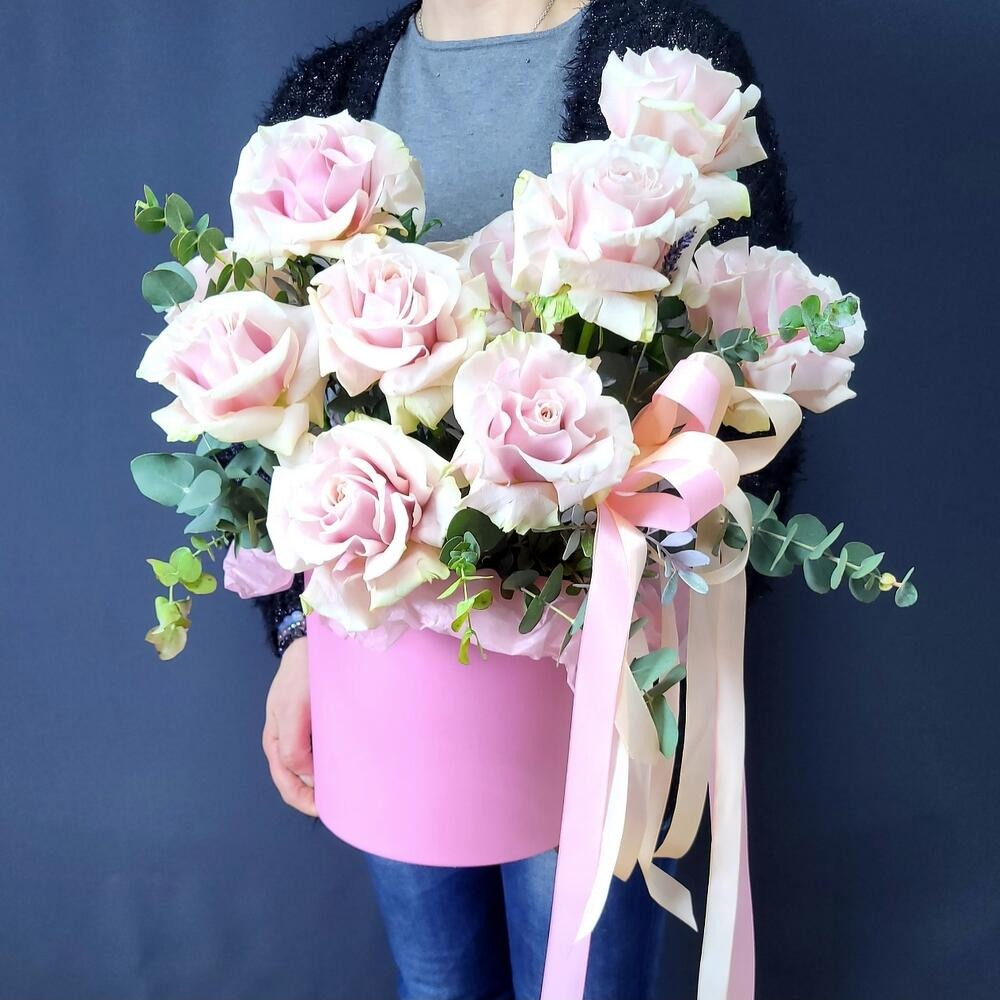Композиция в шляпной коробке из французских роз