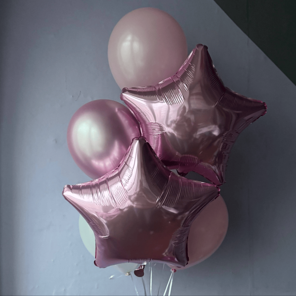 Преобразите любое мероприятие с помощью элегантного набора шаров, сочетающего в себе изысканность фольгированных звёзд и нежность латексных шаров. Композиция выполнена в утончённой розовой палитре —…