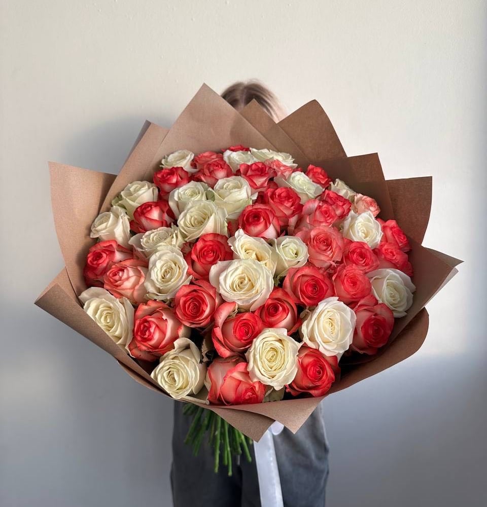 Нежный Букет из Белых и розовых роз❤️ 51 роза в букете. От нас – Бережная доставка, инструкция по уходу за розами, открытка с вашими пожеланиями☺️