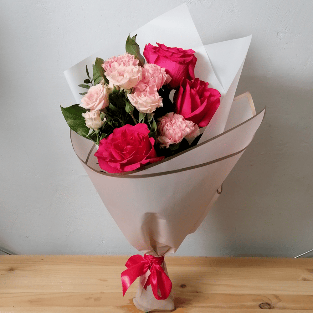 Букет «Розы hot exporter, диантусы и кустовая р»
